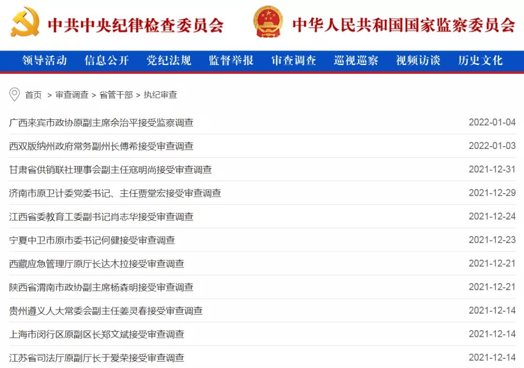 01 1名中管干部接受审查调查,3名中管干部被处分,多名厅局级党员干部被查
